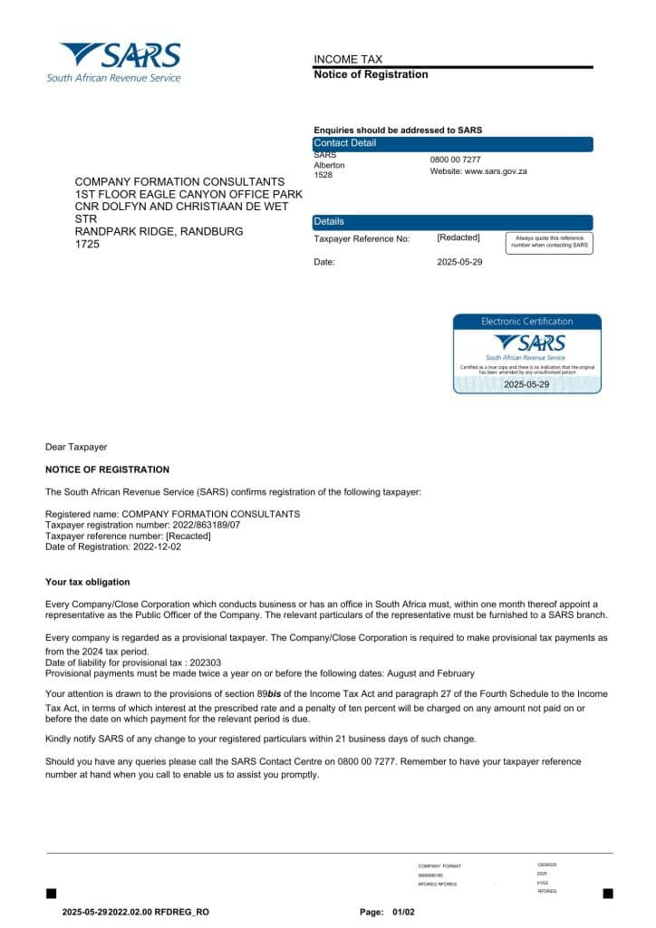 Receive a comprehensive compliance checklist and events calendar to help you understand and manage your important SARS, CIPC, COID, UIF, and other statutory duties. Stay informed of key deadlines to ensure you never miss a compliance requirement.